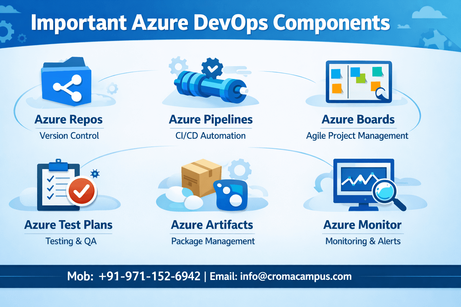 Azure DevOps is a complete platform. This platform allows teams to plan, build, test, and release software more quickly. Azure DevOps was designed by Microsoft to support modern DevOps with automation and collaboration. Cloud and on-premise systems are compatible with Azure DevOps. Azure DevOps supports agile development, continuous integration, and continuous delivery. Each component in Azure DevOps has a clear technical role. Together, these components create a reliable DevOps lifecycle. Azure DevOps Training helps professionals master CI/CD pipelines, source control, and release automation using real Azure projects. Understanding these components is important for engineers who work with cloud-native and enterprise applications.
